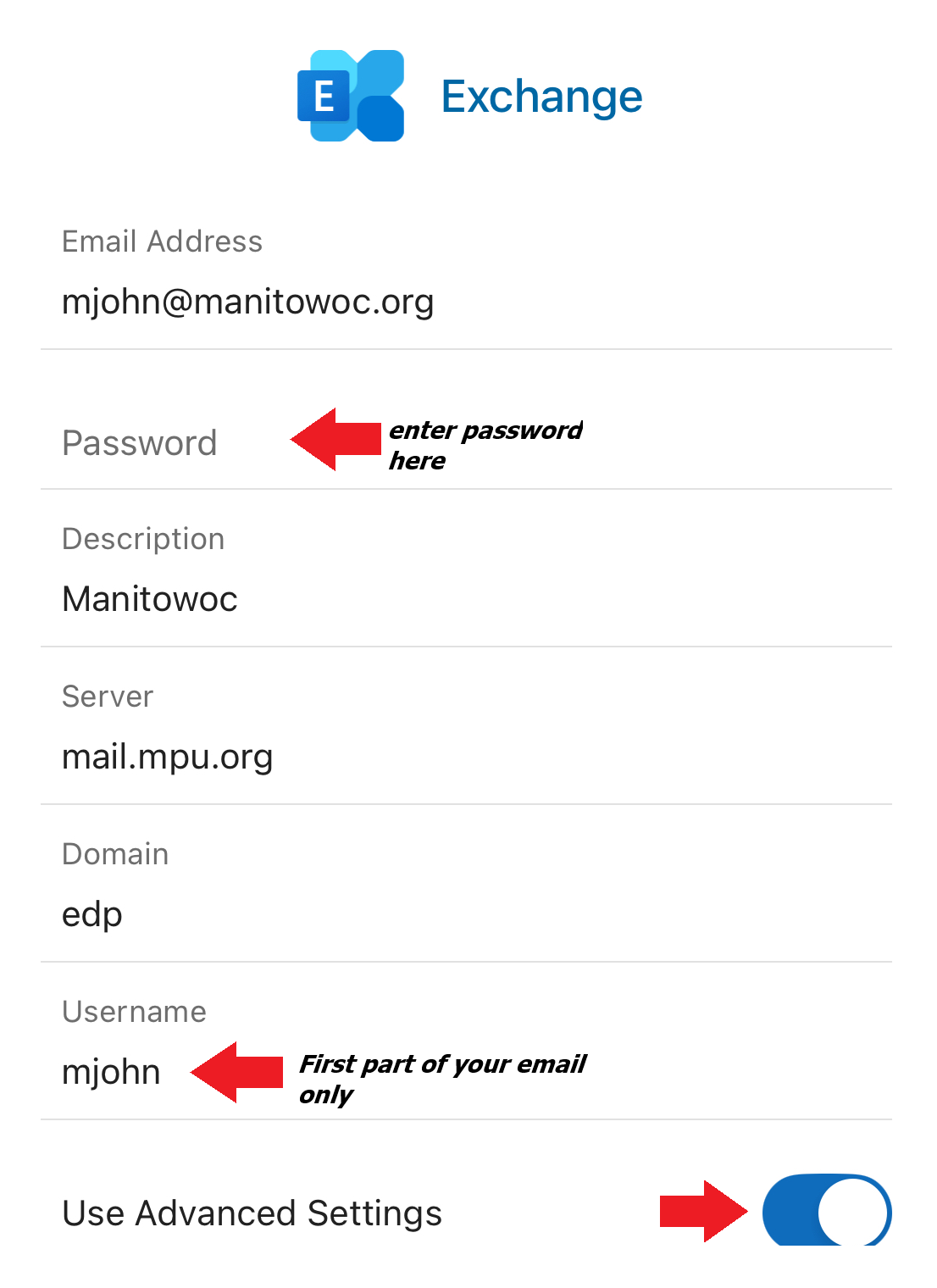 - For the server, enter “mail.mpu.org”